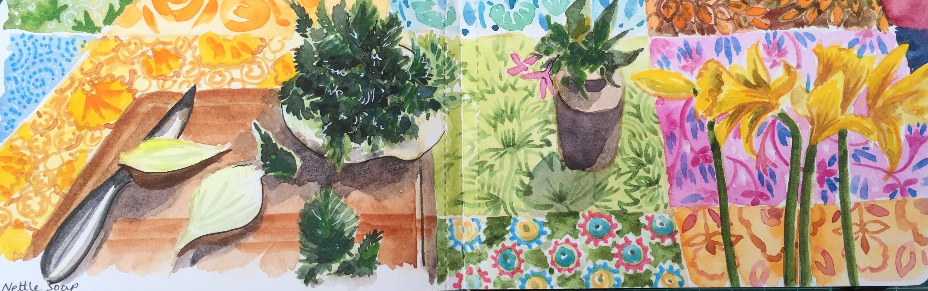 29 page sketchbook, a small moleskine watercolour sketchbook, spring 2016. Just whatever crops up every day to make a Cornish Spring
