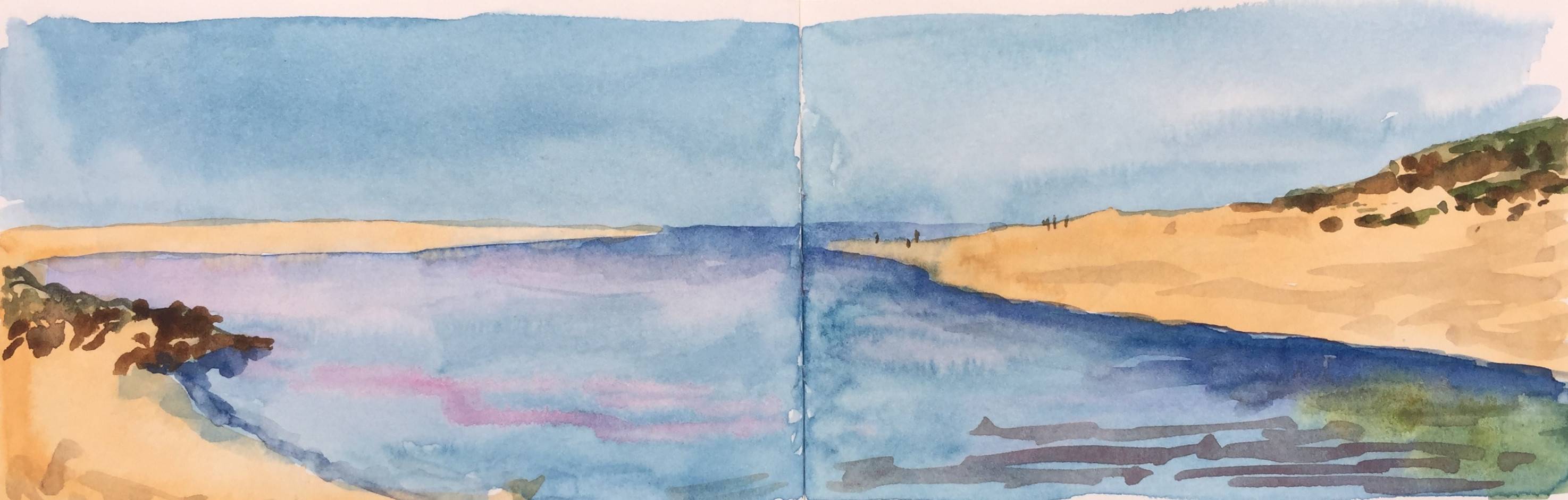 29 paintings in a small moleskine watercolour sketchbook. Framed in a specially designed opening frame enabling the pages to be turned and displayed. A truly interactive artwork.